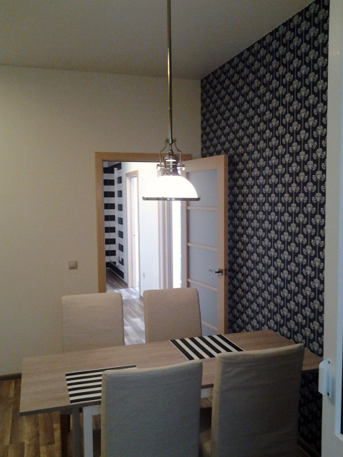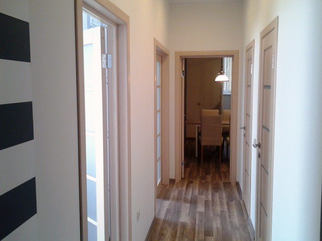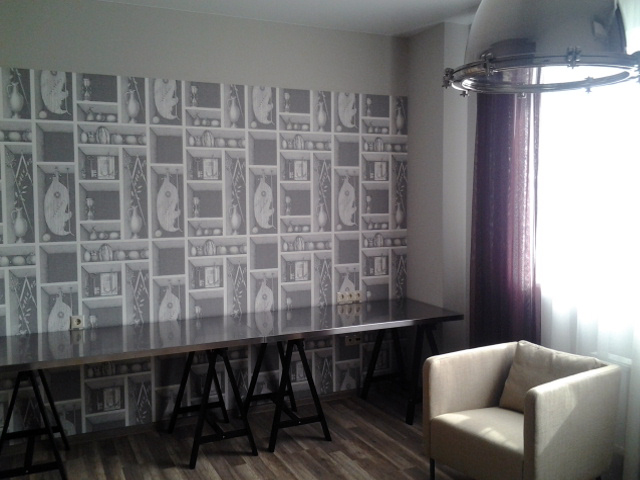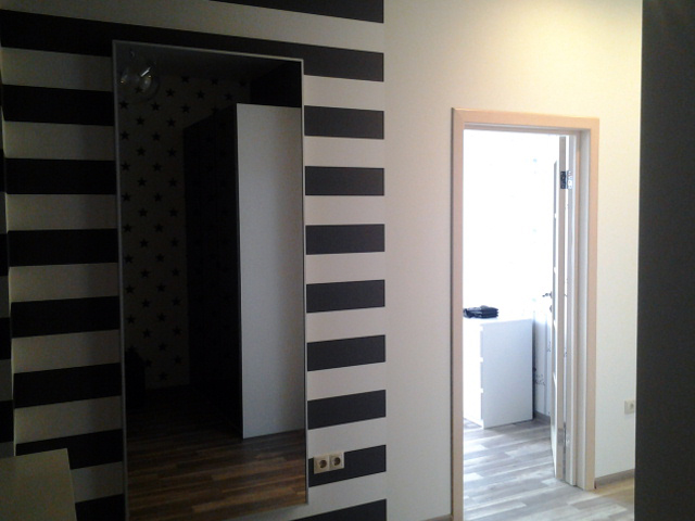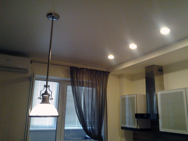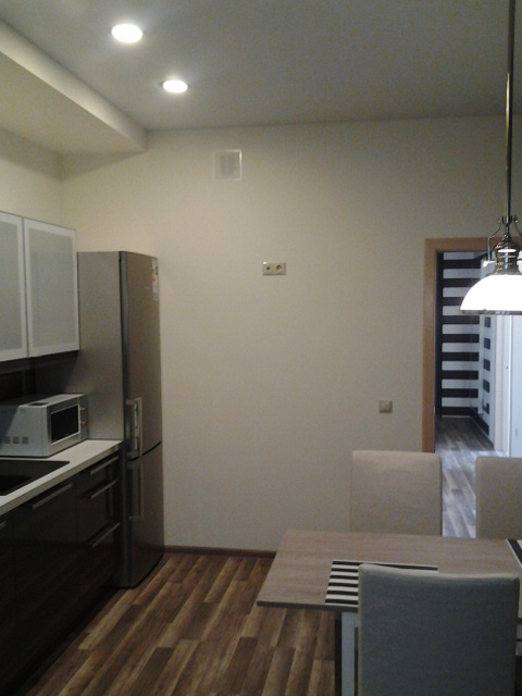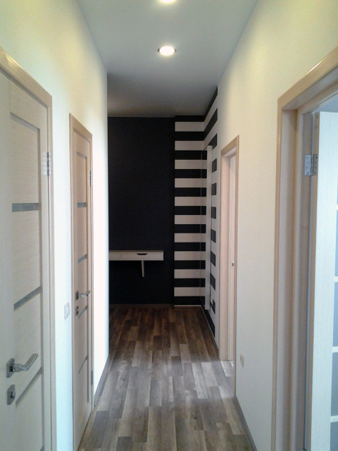 Некоторые стены полностью перештукатуривались, на остальных была оттяжка углов. Потолки натяжные.