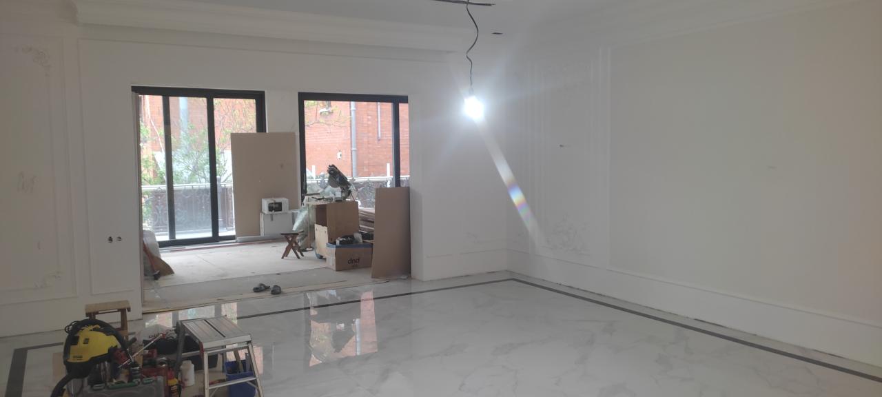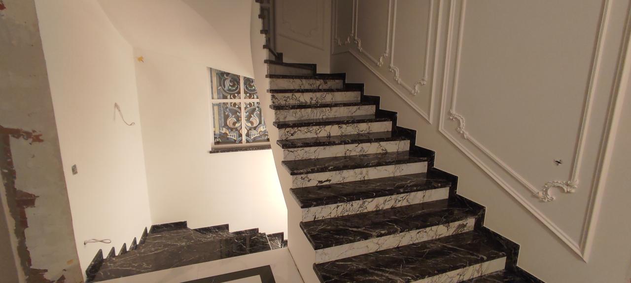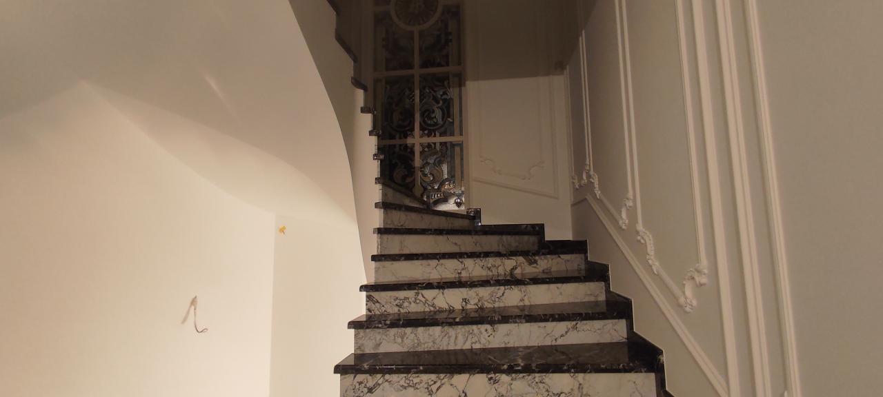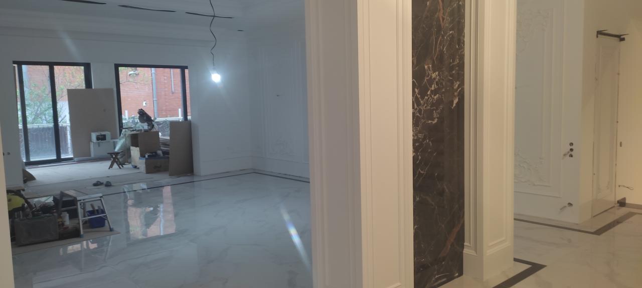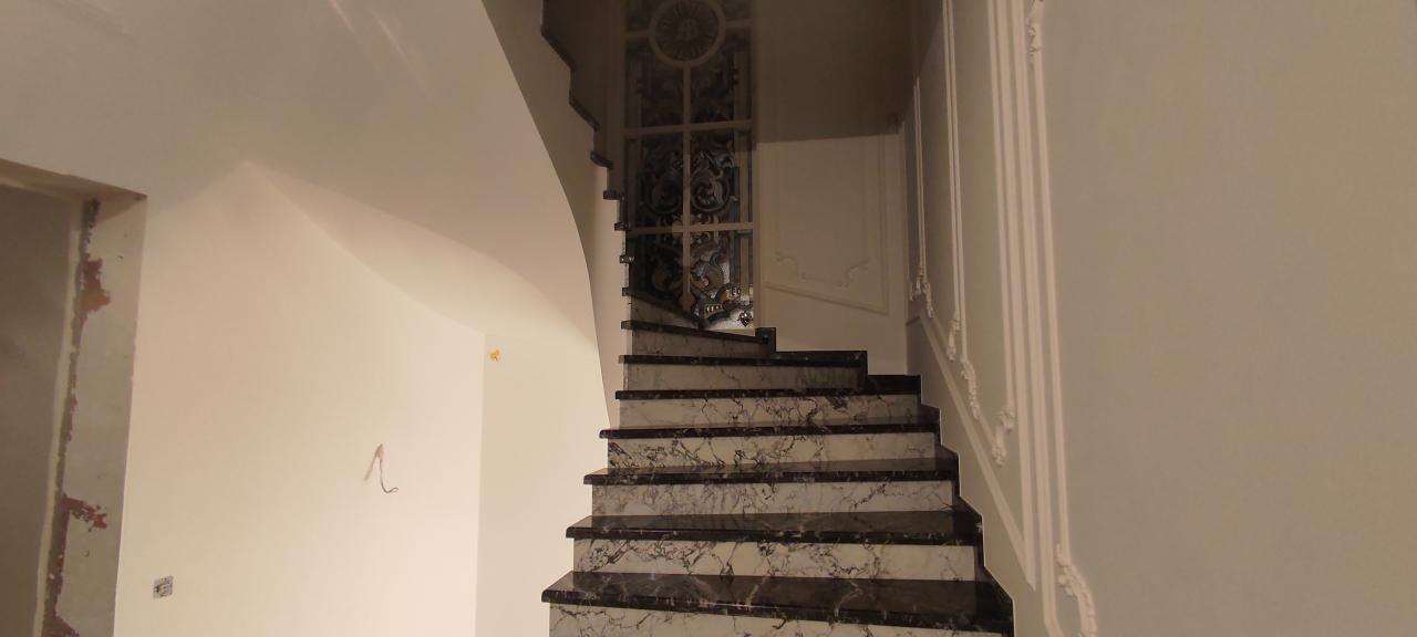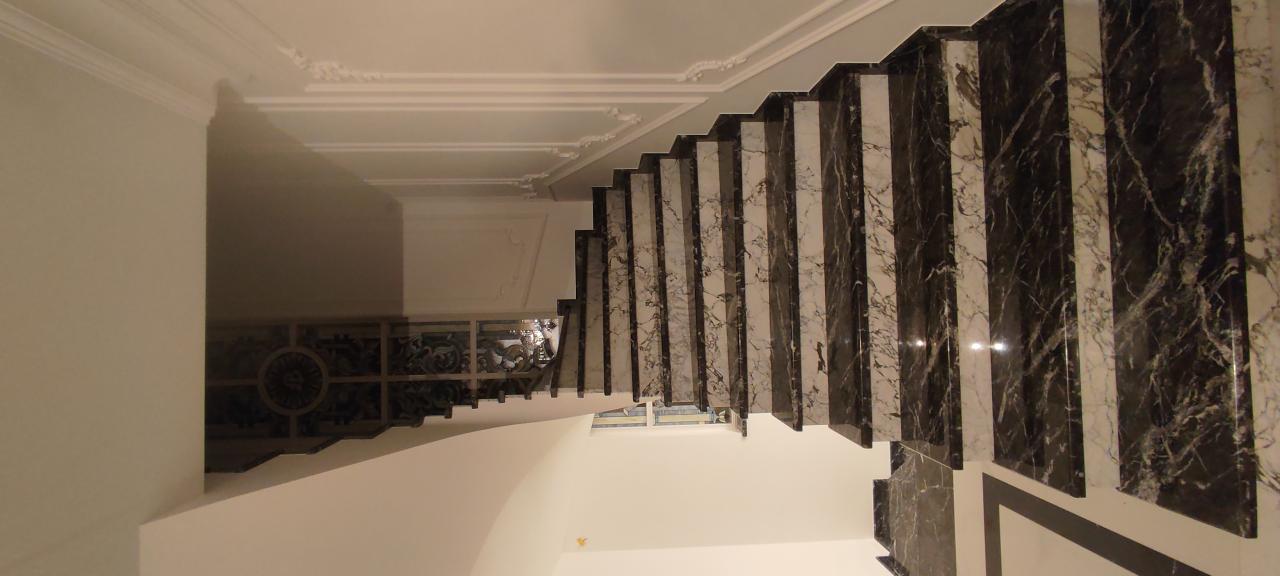 23 апреля 2023 Краска derufa 7, акриловый лак derufa effect matt Обои Малярный флизелин Галтели Orac, гипсовая лепнина Молдинги Orac, художественные элементы из полиуретанаХолл 1 -го этажа, выполненный в одном стиле с лестничным маршем и дизайном верхнего холла.