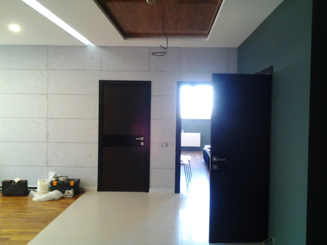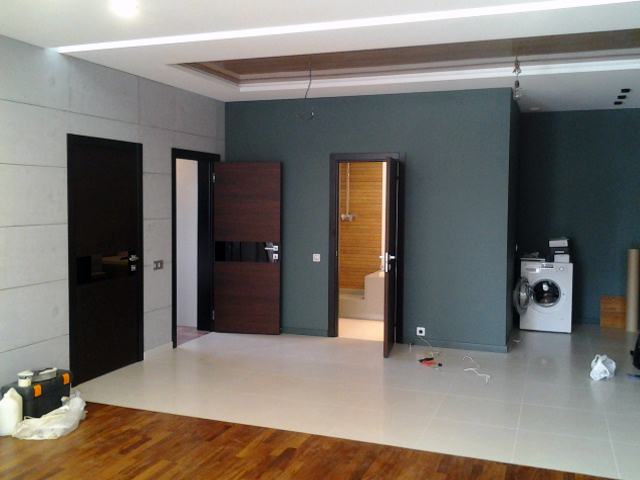 Стены частично перештукатурены, частично углы стен и потолков по стене исправлялась оттяжкой углов.