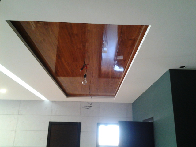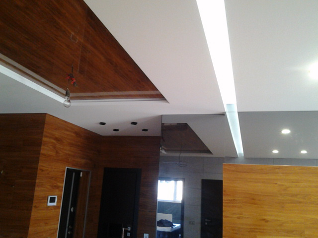 Под ламинат на потолках были собраны конструкции из металопрофиля для гкл, обшитые фанерой.