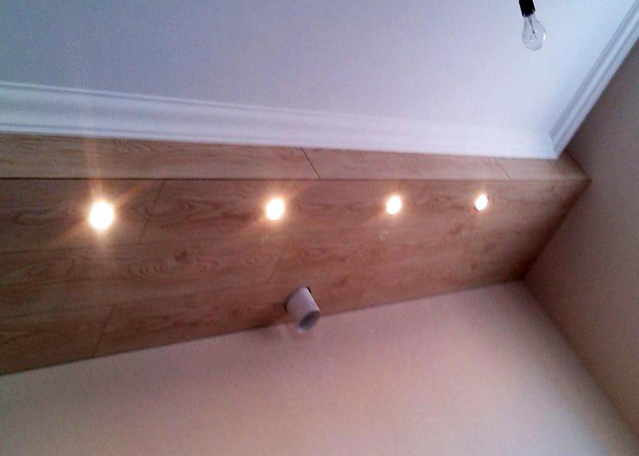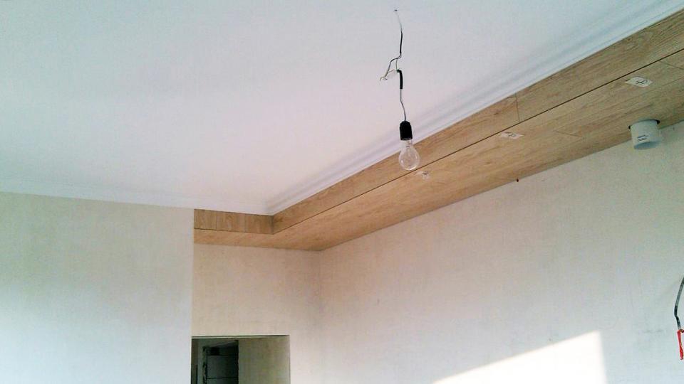 На кухне в целях маскировки вытяжки был собран каркас из профиля для гкл, который был обшит ламинатом.