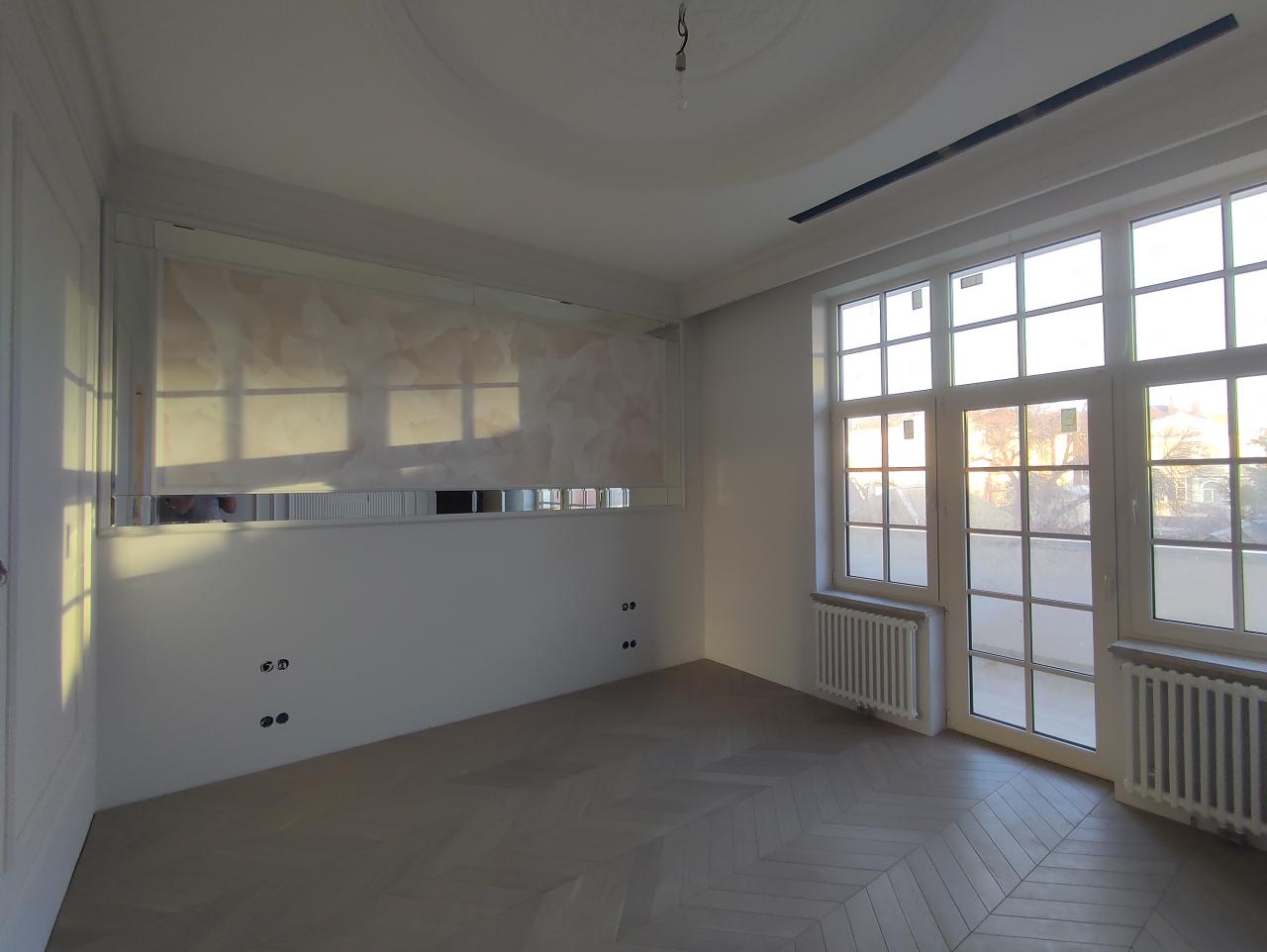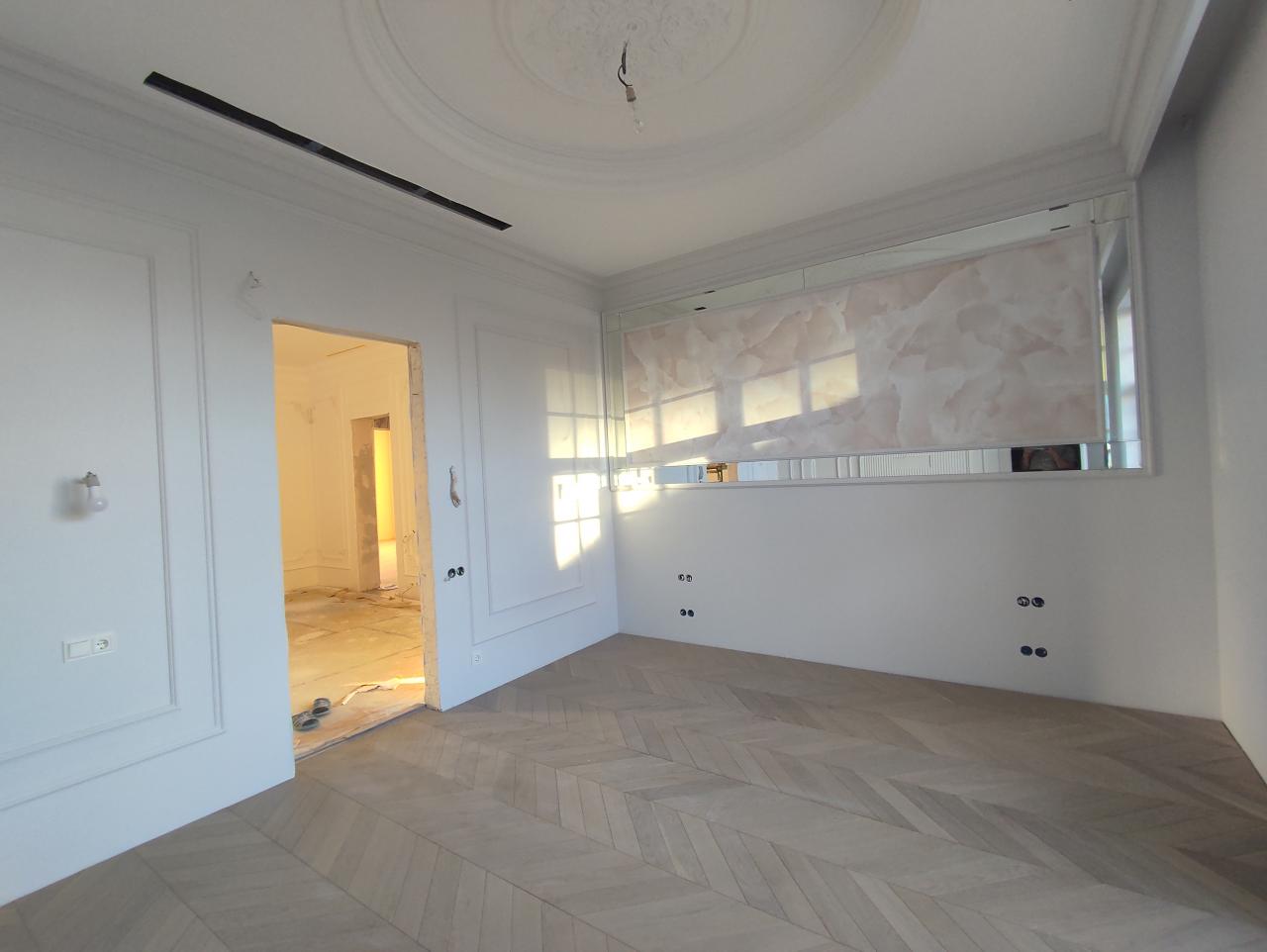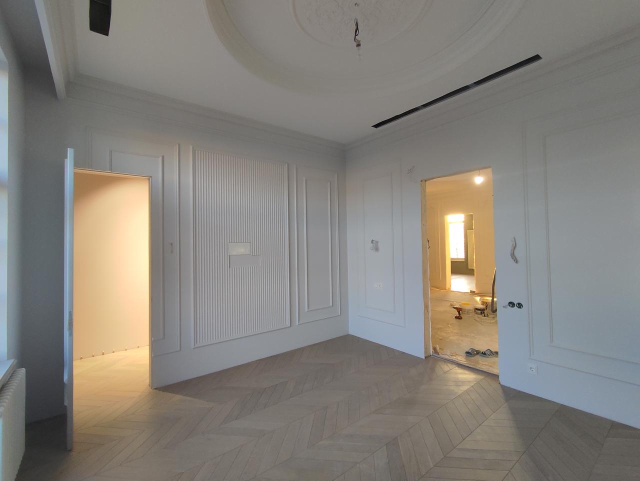 2 сентября 2022 Краска sikkens alphatex fs, Profitec matt plus Обои Малярный флизелин Галтели Orac, гипсовая лепнина Молдинги Orac Панели OracСветлая спальная комната с балконом на восток и гардеробной комнатой.